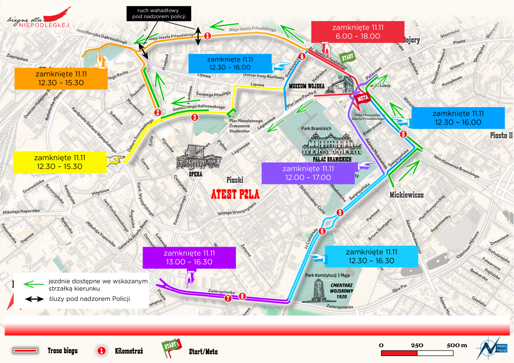 10 listopada 2025W związku z organizacją wydarzenia „Biegnę dla Niepodległej” w dniu 11 listopada będą występowały utrudnienia w ruchu na trasie biegu.